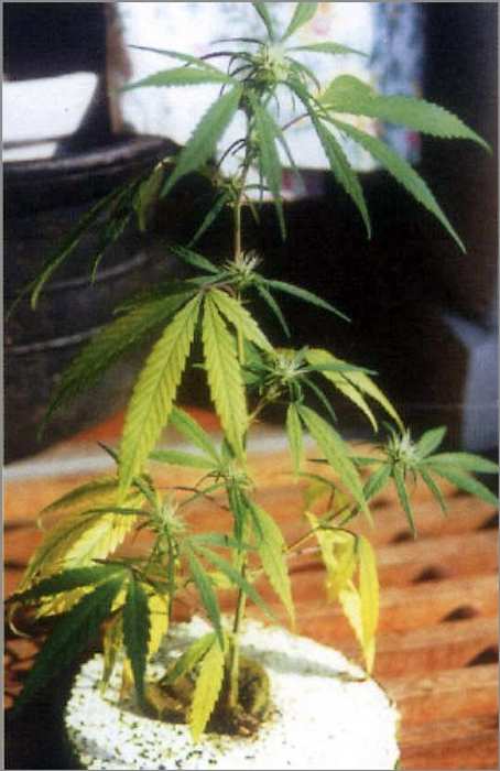 The initial symptoms are the yellowing of the entire leaf including veins usually starting with the younger leaves. Leaf tips may yellow and curl downward. Sulfur deficiencies are light green fruit or younger leaves with a lack of succulence. Elongated roots and woody stem. Although it's hard to see in figure 19, the upper stems of this plant are purple. Although many varieties of cannabis do get purplish stems, the trait generally extends the entire length of the plant's stem, and not just near the top as in this specimen.